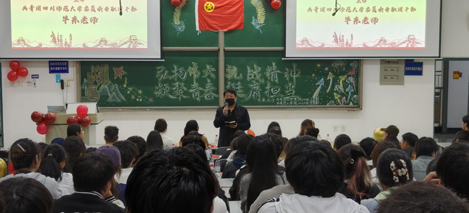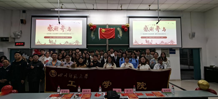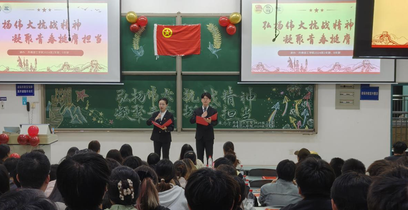 10月31日19时,四川师范大学工学院于第一教学楼C203成功举办以“弘扬伟大抗战精神,凝聚青春挺膺担当”为主题的校级团组织生活观摩活动。本次活动由工学院2024级2班与9班团支部联合承办,共青团四川师范大学专职团干部毕东、工学院党委副书记刘莎、2024级辅导员刘妍君莅临指导,学校组建部成员、学院两委学生干部、2班和9班全体同学及兄弟学院代表共同参与。活动由蒋怡、杜士豪同学主持。