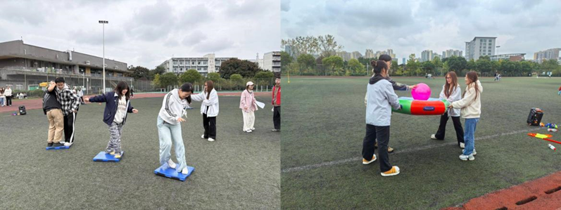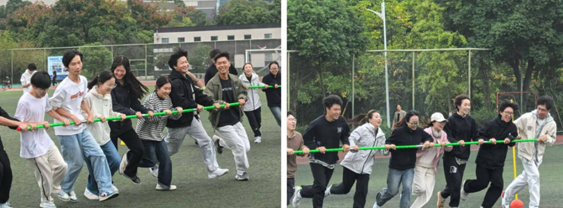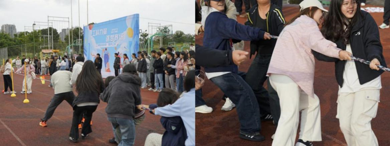 10时30分后,集体与趣味项目成为赛场焦点。“跳大绳”“5人6足”展现默契配合,“车轮滚滚”“快乐毛毛虫”“旋风跑”等项目趣味横生,新增的“印度飞毯”与“雷霆战鼓”更将团队协作推向高潮。男子100米决赛中选手们全力冲刺,混合拔河决赛则成为全场压轴亮点,双方队员齐心发力,现场气氛热烈激昂。