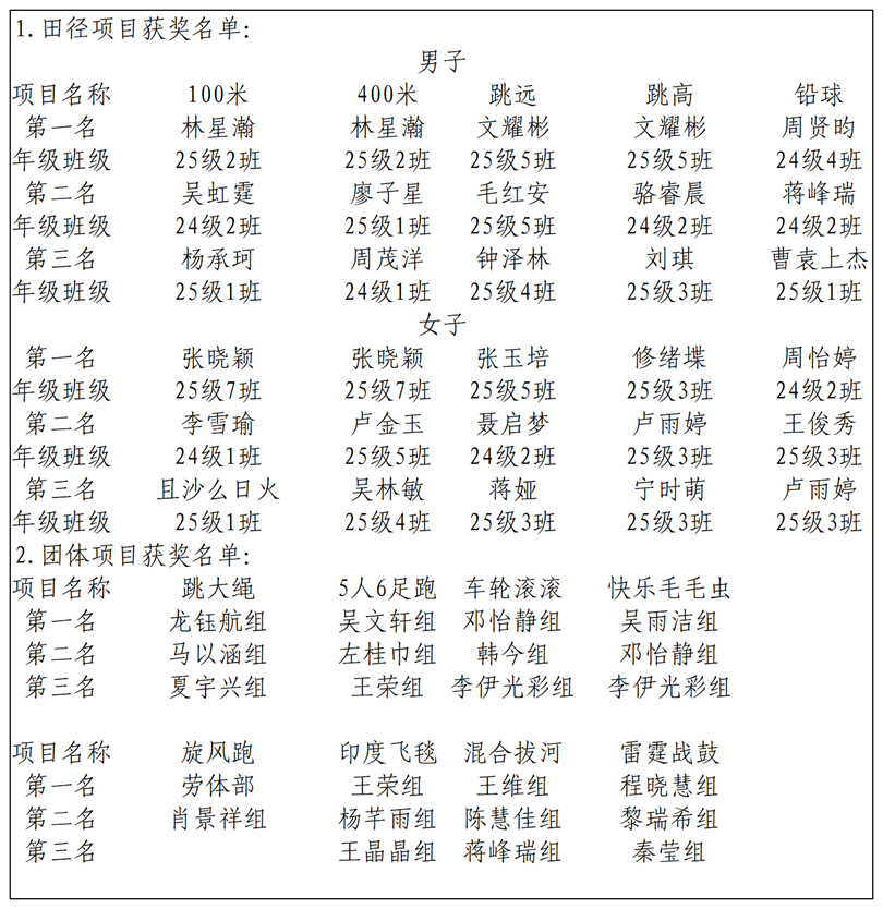 工学院2025年“砺淬工运”运动会获奖名单
