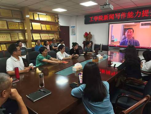 报告会上,姚跃传结合自身长期工作经验,从新闻写作的基本内涵、基本体裁、写作方法、存在的问题以及基本要求等方面进行了阐述,深入浅出地讲解了新闻写作的核心技巧,指出标题应精准凝练,内容需突出时效性与真实性。此外,他还通过案例,对如何挖掘新闻线索、提炼主题亮点,如何平衡新闻的客观性与感染力以及新媒体时代新闻写作等问题逐一讲解。此次报告为学院师生提供了实用指导,对推动学院宣传工作提质增效起到了积极作用。